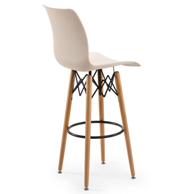 Барний стілець Laser-V практичний і зручний, ідеально підходить для інтер'єру кухні і їдальні. Також буде практичний в експлуатації в клубах, ресторанах і офісах. Стілець матовий, матеріал сидіння поліпропілен посилений скловолокном, завдяки чому виріб стійкий до низьких і високих температур, забезпечуючи високу міцність і довгий термін експлуатації. Конусні міцні ніжки з оригінальними металевими опорами виготовлені з масиву натурального дерева бук, оснащені заглушками проти ковзання по підлозі.