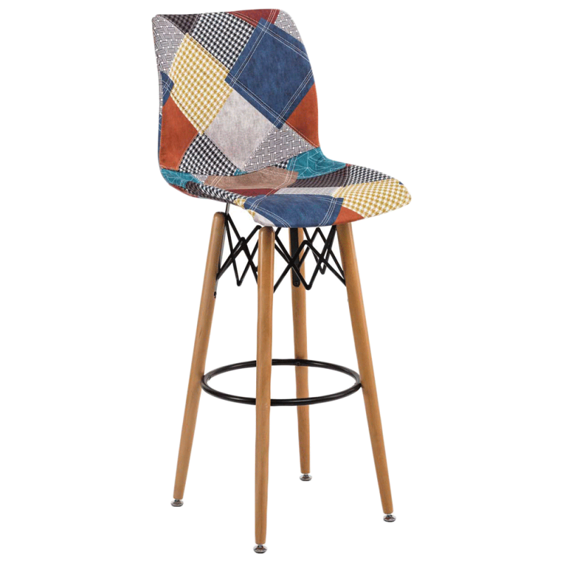 Стілець барний Tilia Laser-V ніжки букові, сидіння з тканиною PATCHWORK