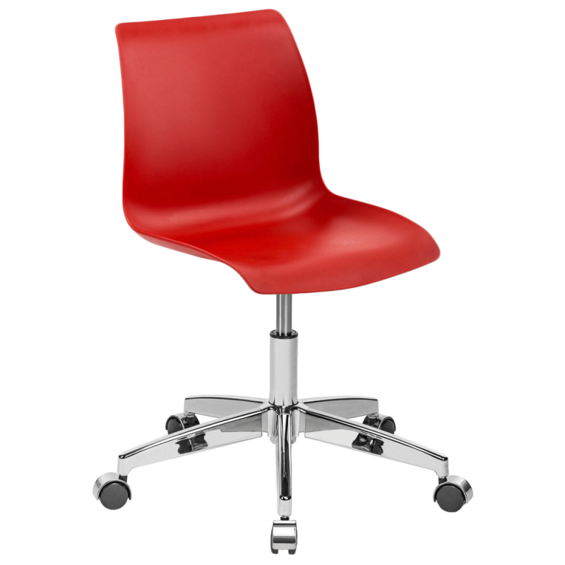 Матеріал виробу поліпропілен посилений скловолокном, завдяки чому виріб стійкий до низьких і високих температур, вологості, а також забезпечує високу міцність і довгий термін експлуатації. Ніжки і хрестовина металеві, хромовані. Комплектуються роликами, забезпечуючи кріслу мобільність.