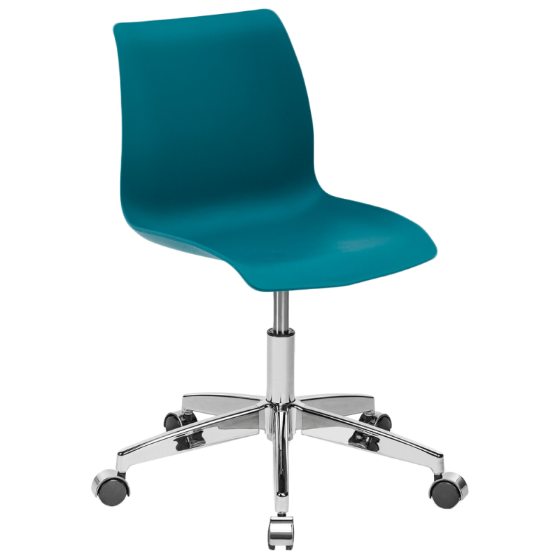 Матеріал виробу поліпропілен посилений скловолокном, завдяки чому виріб стійкий до низьких і високих температур, вологості, а також забезпечує високу міцність і довгий термін експлуатації. Ніжки і хрестовина металеві, хромовані. Комплектуються роликами, забезпечуючи кріслу мобільність.