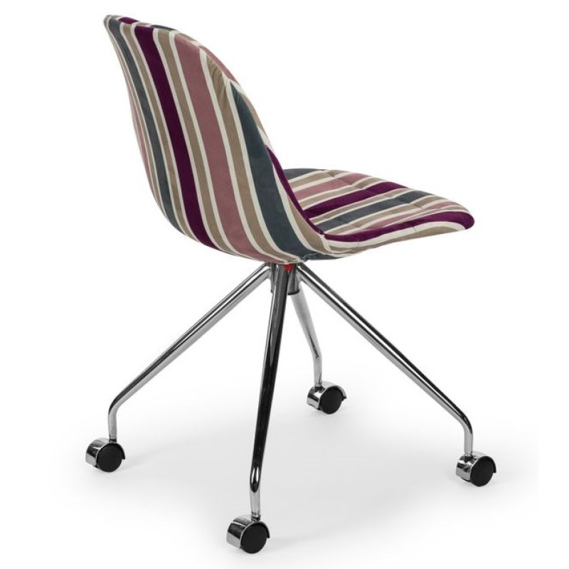 Стілець EOS-О стильний, витончений прекрасно доповнить сучасний дизайн інтер'єру. Володіє ергономічною формою з досить зручною посадкою і спинкою. Саме завдяки цьому забезпечується максимальне відчуття комфорту. Стільці EOS-О мають широку сферу застосування: в офісах, ресторанах, кафе, готелях, розважальних центрах, а також для домашнього та громадського використання. Стілець має практичну тканинну оббивку різного забарвлення. Опорний блок стільця складається з чотирьох хромованих ніжок, на колесах.