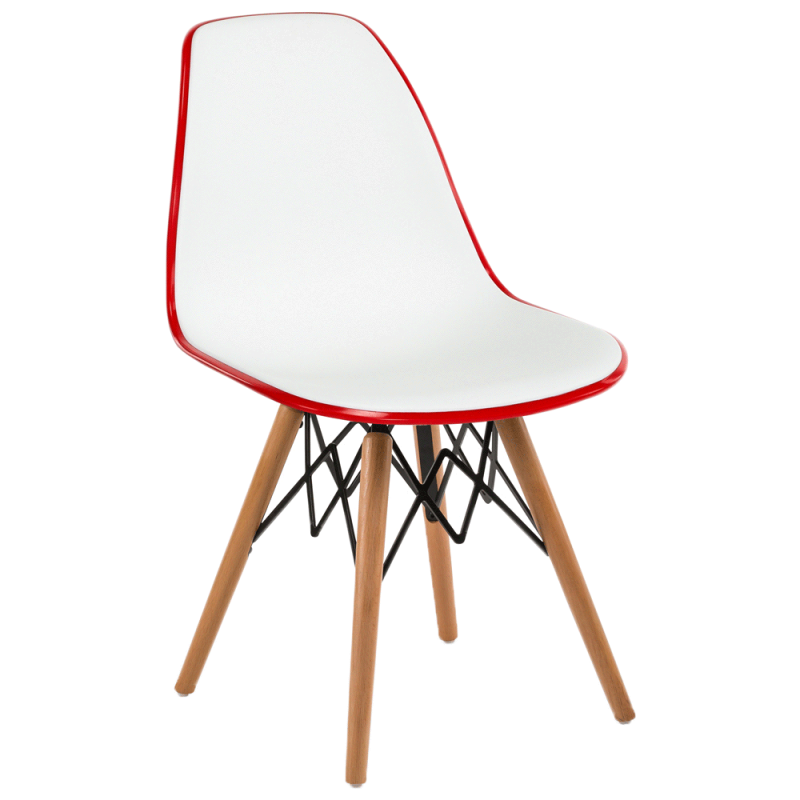 Стілець EOS-V це прекрасне поєднання двох різних кольорів, злитих в єдиний корпус з поліпропілену. Енергійний, елегантний і надзвичайно красивий. EOS це нова надихаюча марка поп-арт культури, підходить для використання практично в будь-якому місці. Стілець ідеально підходить для будинку, їдальні, а також прекрасно вписується в офіси, кабінети і кімнати очікувань. Матеріал виробу поліпропілен посилений скловолокном, завдяки чому виріб стійкий до низьких і високих температур, вологості, а також забезпечує високу міцність і довгий термін експлуатації. Конусні міцні ніжки виготовлені з масиву натурального дерева бук з оригінальними металевими опорами.