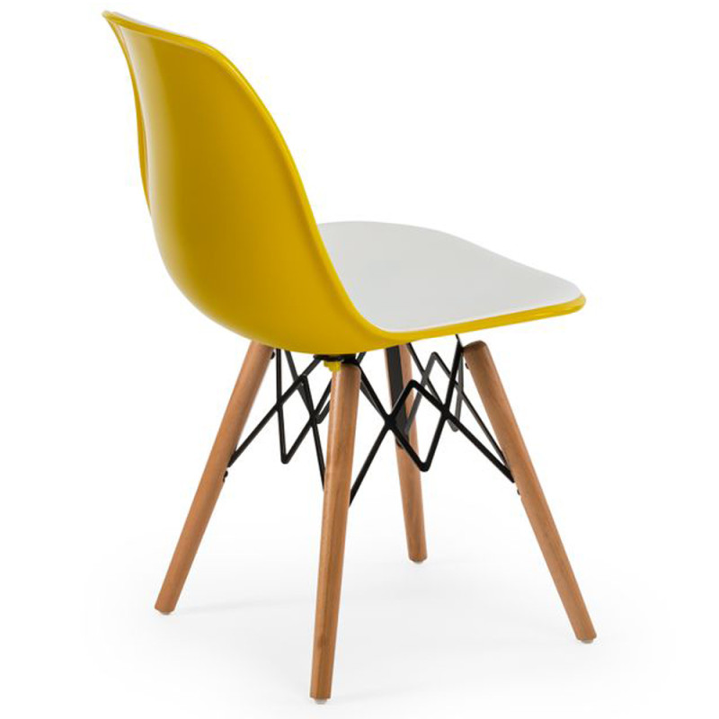 Стілець EOS-V це прекрасне поєднання двох різних кольорів, злитих в єдиний корпус з поліпропілену. Енергійний, елегантний і надзвичайно красивий. EOS це нова надихаюча марка поп-арт культури, підходить для використання практично в будь-якому місці. Стілець ідеально підходить для будинку, їдальні, а також прекрасно вписується в офіси, кабінети і кімнати очікувань. Матеріал виробу поліпропілен посилений скловолокном, завдяки чому виріб стійкий до низьких і високих температур, вологості, а також забезпечує високу міцність і довгий термін експлуатації. Конусні міцні ніжки виготовлені з масиву натурального дерева бук з оригінальними металевими опорами.