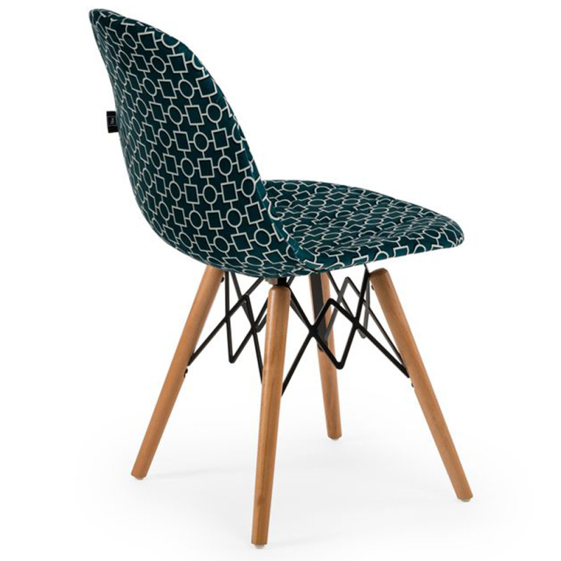 Стільці Eos-V відрізняються елегантним поєднанням різних тканин. EOS це нова надихаюча марка поп-арт культури, підходить для використання практично в будь-якому місці. Стілець ідеально підходить для будинку, їдальні, а також прекрасно вписується в офіси, кабінети і кімнати очікувань. Конусні міцні ніжки виготовлені з масиву натурального дерева бук, з оригінальними металевими опорами.