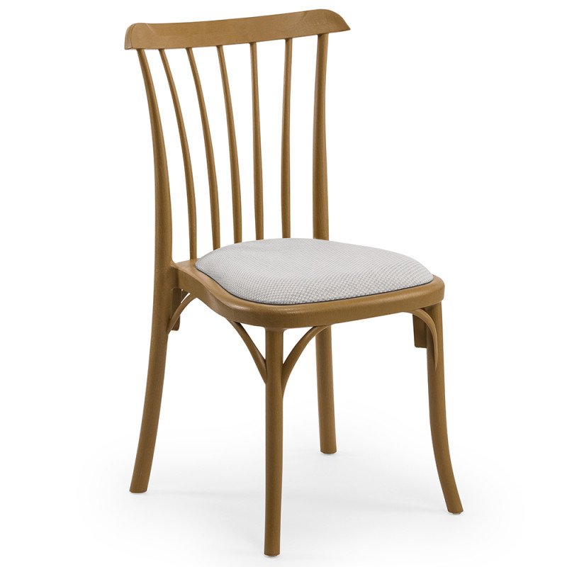 Стілець Gozo Pad це ідеальне поєднання ліній і форм, що створює привабливий силует. Стілець з текстурованою під дерево поверхнею, призначений для домашнього використання, а також для використання в громадських місцях. Сидіння стільця з м'яким сидінням і тканинної оббивкою. Дана модель міцна і зносостійка, що без проблем витримає великий потік людей, зберігаючи при цьому бездоганний зовнішній вигляд протягом усього терміну експлуатації.