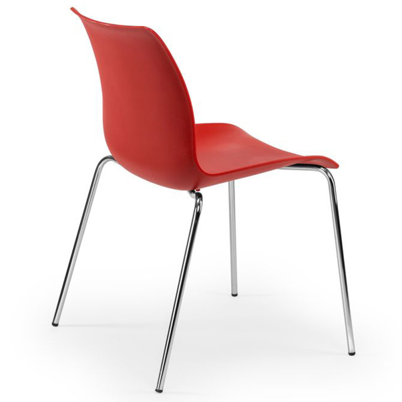 Стілець Laser практичний і зручний, який ідеально вписується в кухню і їдальню. Підходить для громадських місць, таких як клуби, ресторани, офіси. Стілець матовий, матеріал поліпропілен посилений скловолокном, завдяки чому виріб стійкий до низьких і високих температур, вологості, а також забезпечує високу міцність і довгий термін експлуатації. Ніжки і рама металеві, хромовані ?14 мм, оснащені заглушками проти ковзання по підлозі.