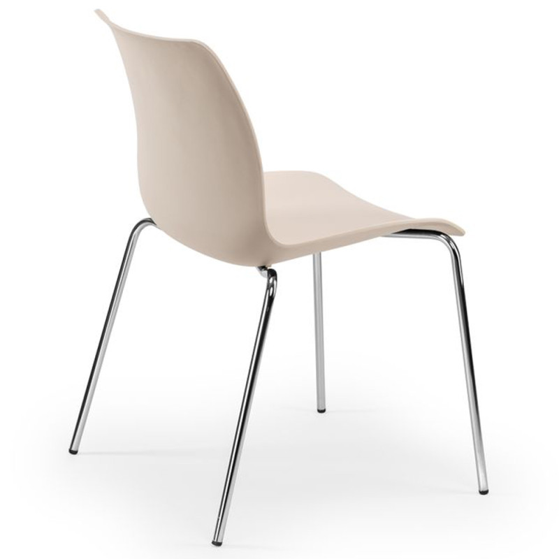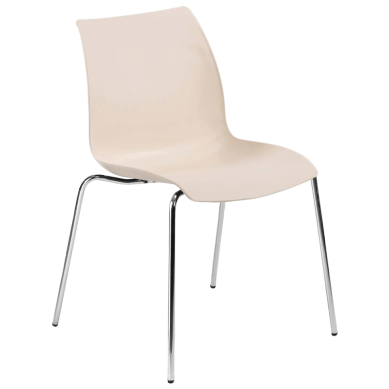 Стілець Laser практичний і зручний, який ідеально вписується в кухню і їдальню. Підходить для громадських місць, таких як клуби, ресторани, офіси. Стілець матовий, матеріал поліпропілен посилений скловолокном, завдяки чому виріб стійкий до низьких і високих температур, вологості, а також забезпечує високу міцність і довгий термін експлуатації. Ніжки і рама металеві, хромовані ?14 мм, оснащені заглушками проти ковзання по підлозі.