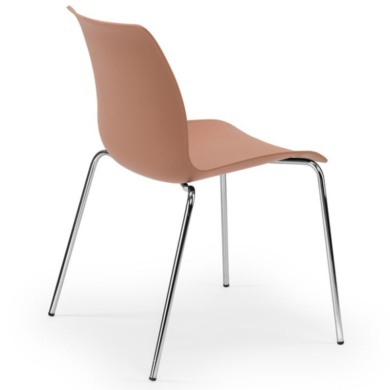 Стілець Laser практичний і зручний, який ідеально вписується в кухню і їдальню. Підходить для громадських місць, таких як клуби, ресторани, офіси. Стілець матовий, матеріал поліпропілен посилений скловолокном, завдяки чому виріб стійкий до низьких і високих температур, вологості, а також забезпечує високу міцність і довгий термін експлуатації. Ніжки і рама металеві, хромовані ?14 мм, оснащені заглушками проти ковзання по підлозі.