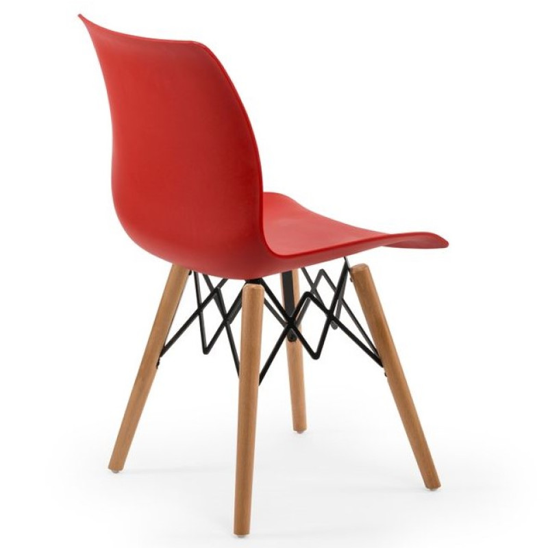 Стілець Laser-V практичний і зручний, ідеально підходить для інтер'єру кухні і їдальні. Також буде практичний в експлуатації в клубах, ресторанах і офісах. Матеріал сидіння поліпропілен посилений скловолокном, завдяки чому виріб стійкий до низьких і високих температур, а також забезпечує високу міцність і довгий термін експлуатації. Конусні міцні ніжки з оригінальними металевими опорами виготовлені з масиву натурального дерева бук, оснащені заглушками проти ковзання по підлозі.