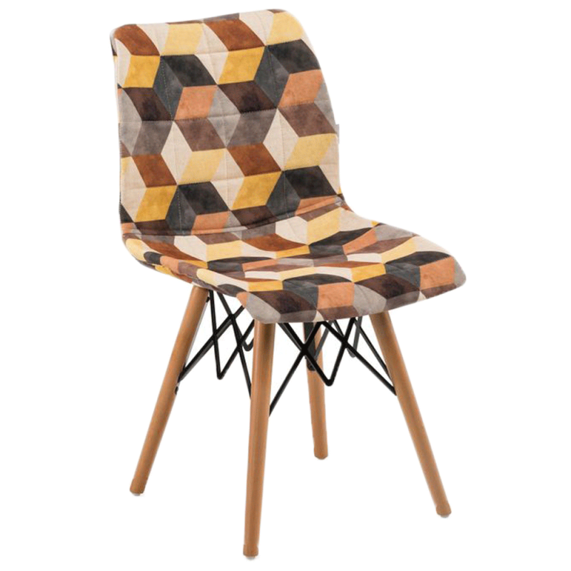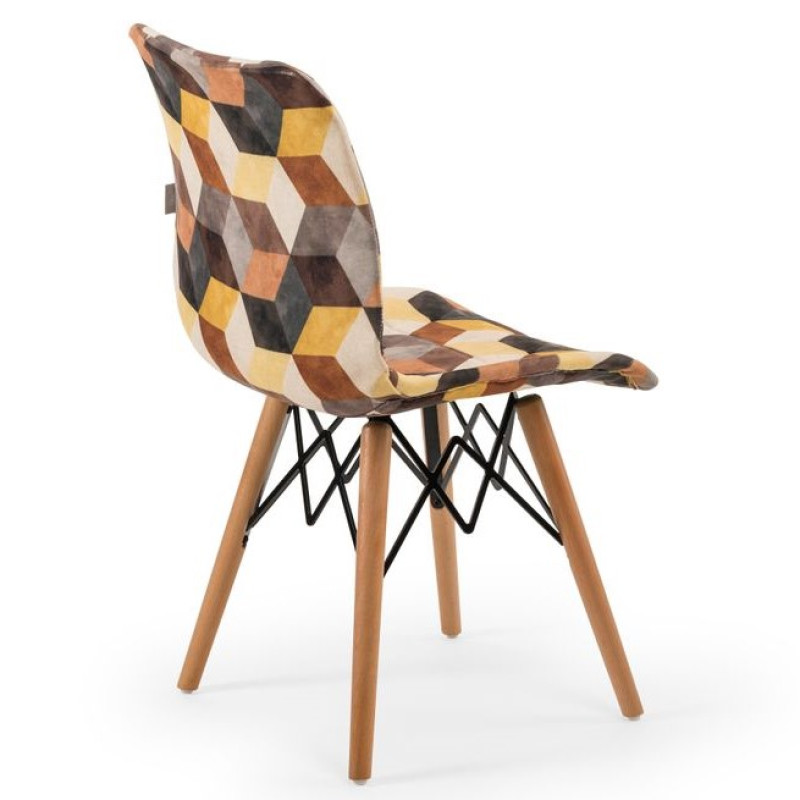 Стілець Laser-V практичний і зручний, ідеально підходить для інтер'єру кухні і їдальні. Також буде практичний в експлуатації в клубах, ресторанах і офісах. Сидіння має барвисту тканинну оббивку. Рекомендується для використання в приміщенні. Конусні міцні ніжки з оригінальними металевими опорами виготовлені з масиву натурального дерева бук, оснащені заглушками проти ковзання по підлозі.