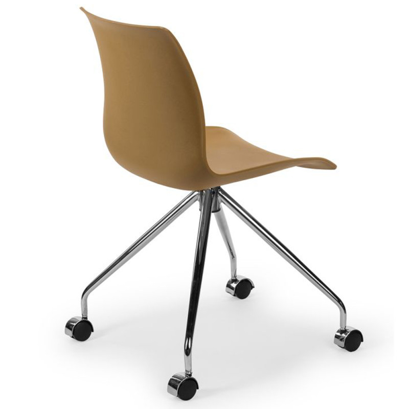 Стілець Laser-O практичний і зручний, який ідеально вписується в кухню і їдальню. Також ідеально підходить для громадських місць, таких як клуби, ресторани, офіси. Стілець матовий, матеріал поліпропілен посилений скловолокном, завдяки чому виріб стійкий до низьких і високих температур, вологості, а також забезпечує високу міцність і довгий термін експлуатації. Ніжки і рама металеві, хромовані, комплектуються роликами, забезпечуючи кріслу мобільність.