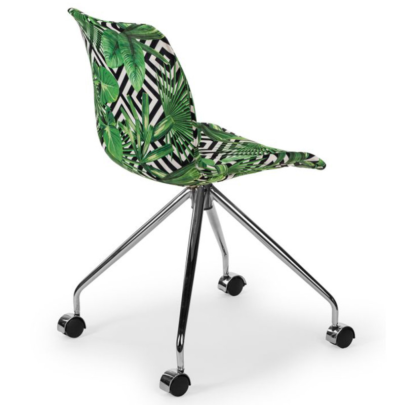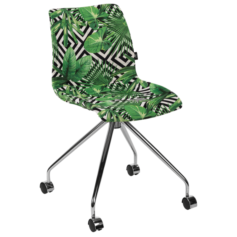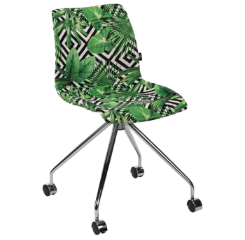 Стілець Laser-O практичний і зручний, який ідеально вписується в кухню і їдальню. Також ідеально підходить для громадських місць, таких як клуби, ресторани, офіси. Оббивка стільця тканинна. Ніжки і рама металеві, хромовані, комплектуються роликами, забезпечуючи крісла мобільність.