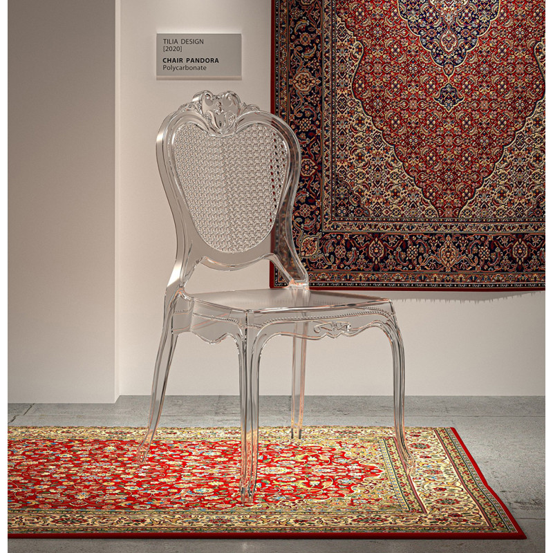 Опис і застосуванняДля ппроведення заходів чудовим варіантом послужить прозорий стілець Pandora. Стілець виготовлений із полікарбонату. Допустиме навантаження на крісло до 200 кг. Стільці штабелюють по 13-15 шт. Рекомендується використовувати у приміщенні. Для більшого комфорту можна доукомплектувати подушками. На продукцію Tilia надається дворічна гарантія.