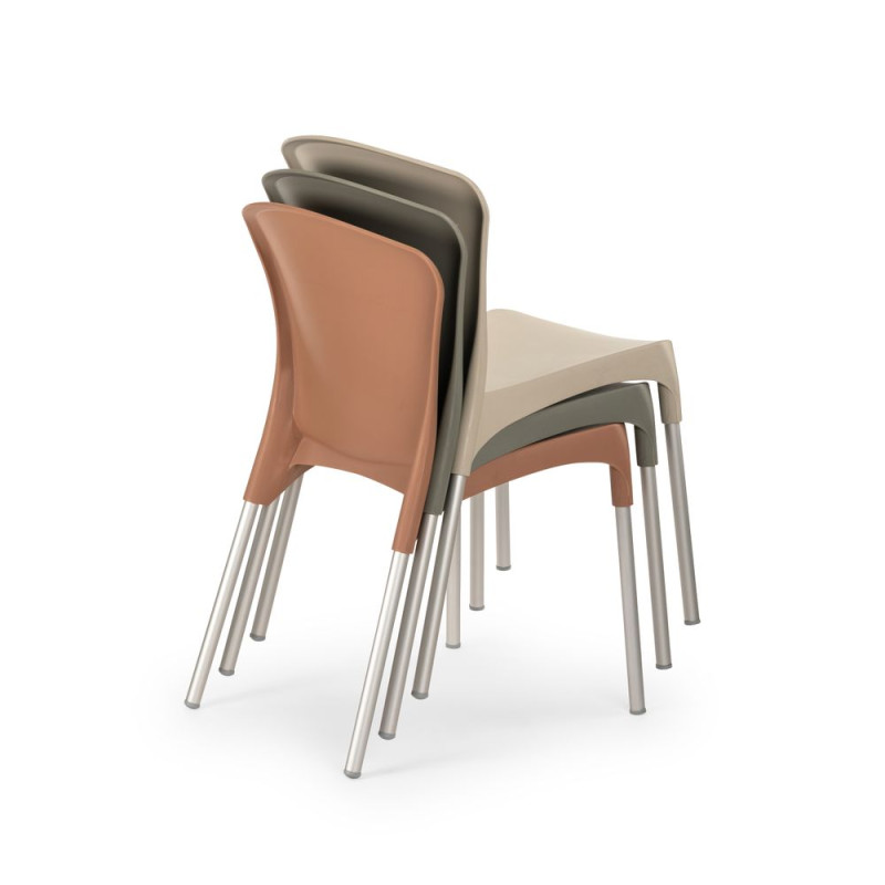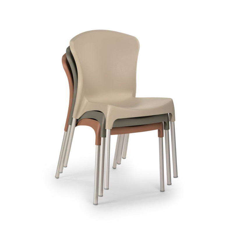 Зручне і ергономічне крісло Stella. Підходить для використання як всередині так і зовні приміщення.Матеріал виробу поліпропілен посилений скловолокном, завдяки чому виріб стійкий до низьких і високих температур, вологості, а також забезпечує високу міцність і довгий термін експлуатації. Ніжки з алюмінію діаметром 20 мм оснащені заглушками проти ковзання по підлозі.