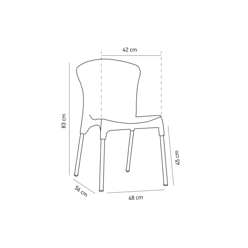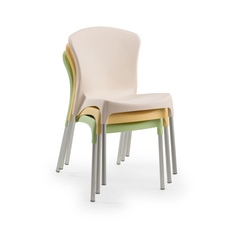 Зручне і ергономічне крісло Stella. Підходить для використання як всередині так і зовні приміщення.Матеріал виробу поліпропілен посилений скловолокном, завдяки чому виріб стійкий до низьких і високих температур, вологості, а також забезпечує високу міцність і довгий термін експлуатації. Ніжки з алюмінію діаметром 20 мм оснащені заглушками проти ковзання по підлозі.