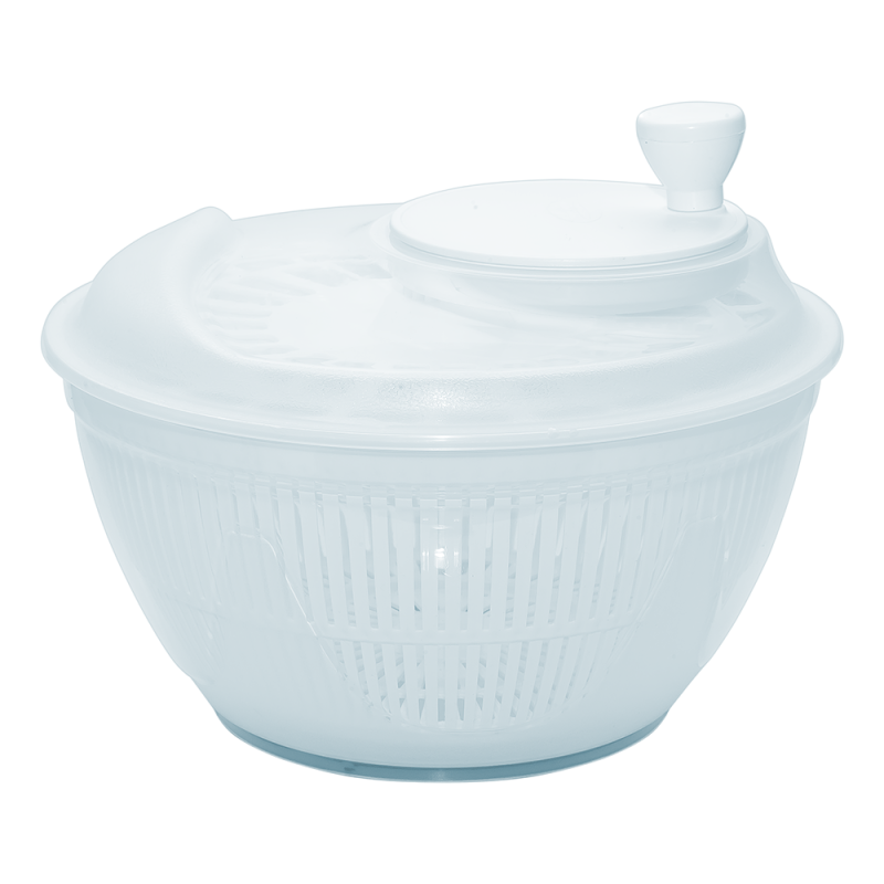 Промийте листя салату, овочі або ягоди і розмістіть їх усередині кошика. Наповніть кошик водою наполовину, розмістіть всередині фрукти і овочі, міцно візьміть і поверніть рукоятку для початку обертання. Вилийте воду і прокрутіть ще раз. Прозорий контейнер можна використовувати як миску для салату. Кошик також можна використовувати для просушування гарячої пасти, чищеного картоплі і т.п.