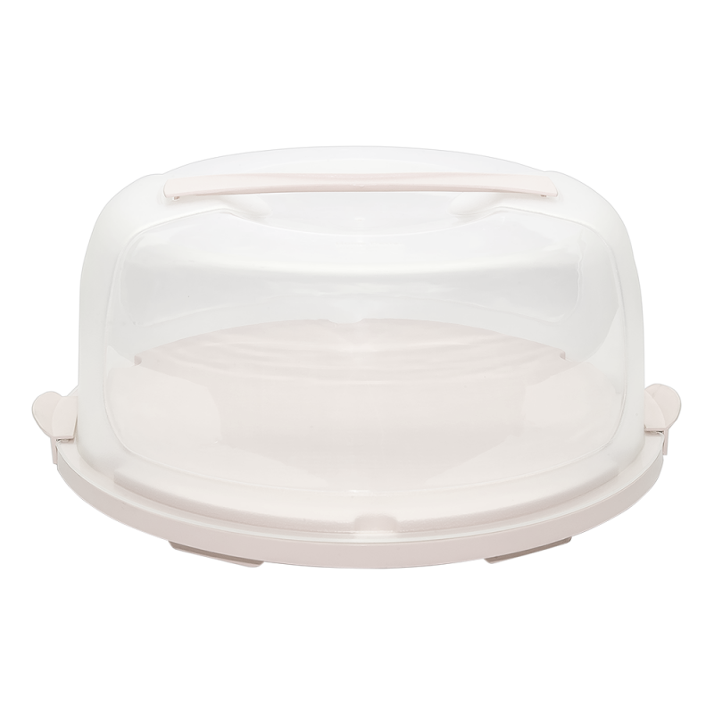 Практична тортовниця з кришкою і ручкою, для зберігання і транспортування не тільки улюблених десертів, а й інших продуктів . Фіксатори з двох сторін щільно з'єднують верхню і нижню частини, що дозволяє уникнути обвітрювання. Виготовлено з високоякісного міцного пластику безпечного для харчових продуктів. Температурний діапазон використання від -25 до + 95°С. Можна мити в посудомийній машині. Допустима заморозка.