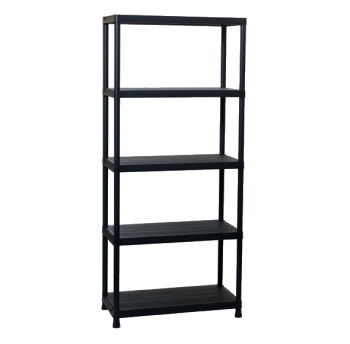 Універсальний пластиковий стелаж на 5 полиць Universal 84-5. Стелаж можна застосовувати для побутових потреб: зберігання будь-яких неважких речей в будинку, гаражі, офісі. Так само, використовують для зберігання або демонстрації товарів в магазинах, торгових рядах, невеликих складах, підсобних приміщеннях. Пластиковий стелаж чорного кольору не мазкий і відмінно впишеться в будь-який інтер'єр. Пластик, на відміну від металу і дерева, не схильний до корозії, йому не страшна волога. Пластикові стелажі не вимагають фарбування, а легка збірка і невелика вага роблять їх дуже практичними і зручними при експлуатації і транспортуванні.