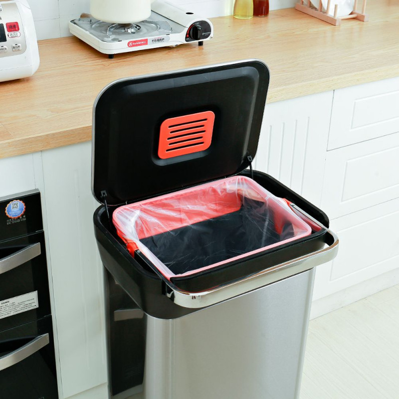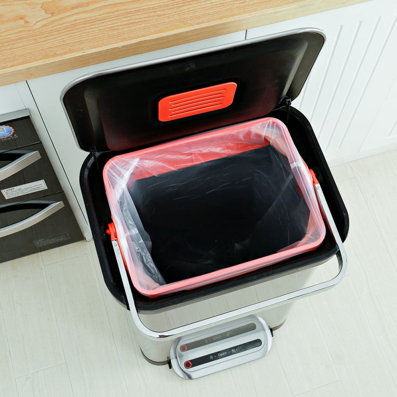 Всередині відра спеціальні кріплення для фіксації сміттєвих пакетів