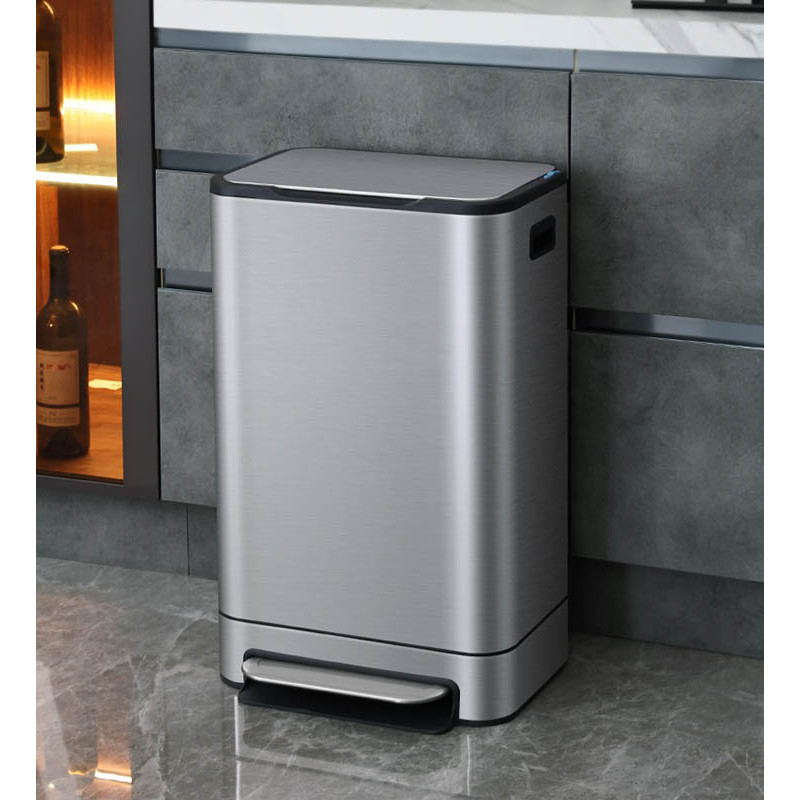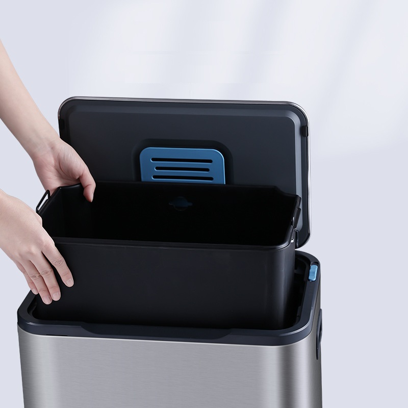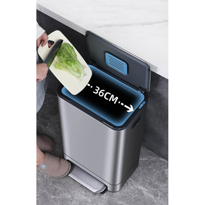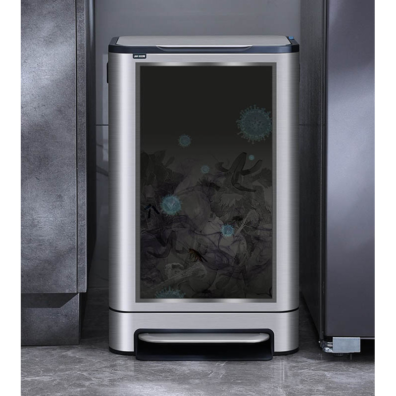 Сміттєве відро JAH виготовлене з нержавіючої сталі преміум-класу. Відро оснащене широкою і стійкою педаллю, яка дозволяє легко відкривати кришку без дотику рук. Щільно прилягаюча кришка допомагає запобігати поширенню запахів, а вбудована амортизаційна система забезпечує безшумне закривання. Завдяки ергономічному дизайну, воно гармонійно впишеться в інтер'єр сучасної кухні або ванної кімнати.