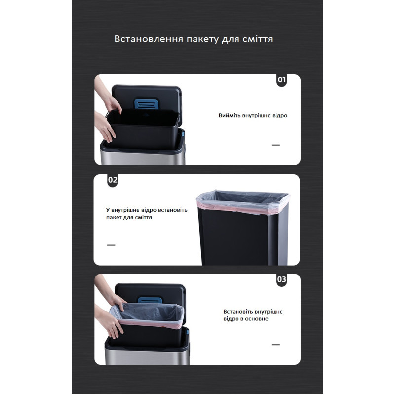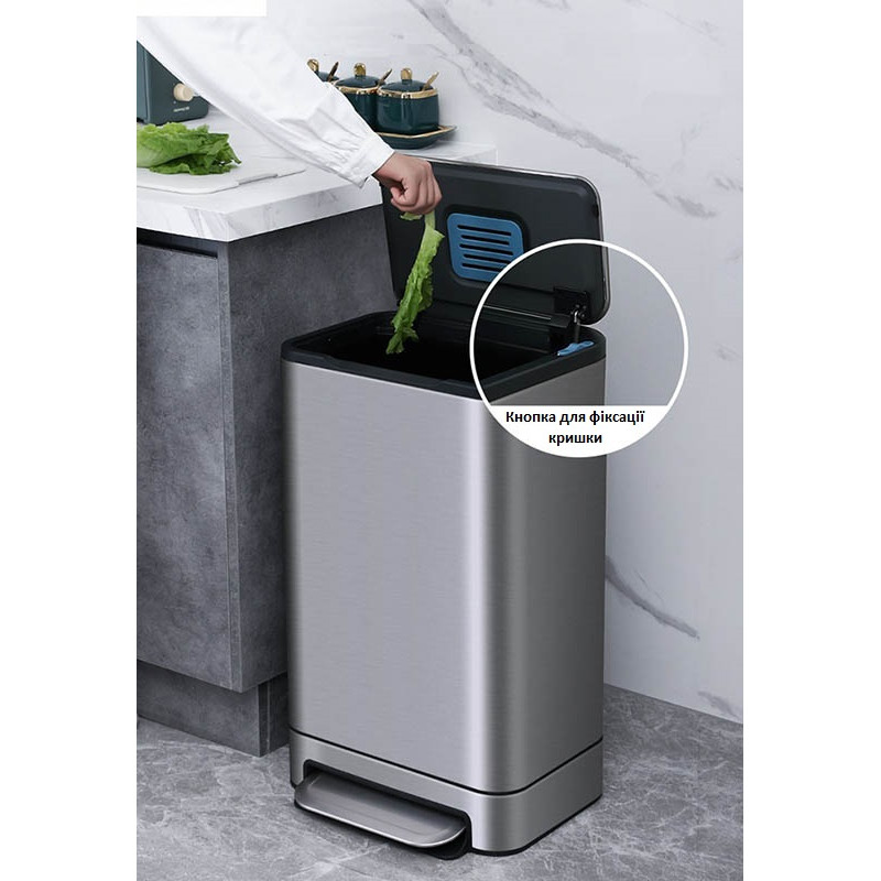 Внутрішнє відро має отвір для фіксації сміттєвого пакету;