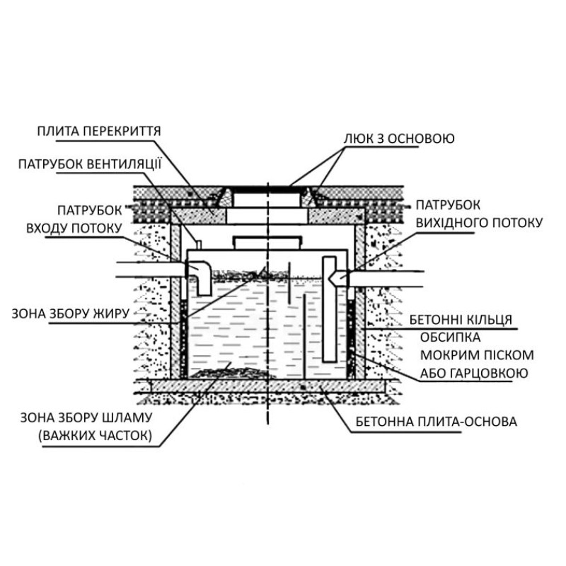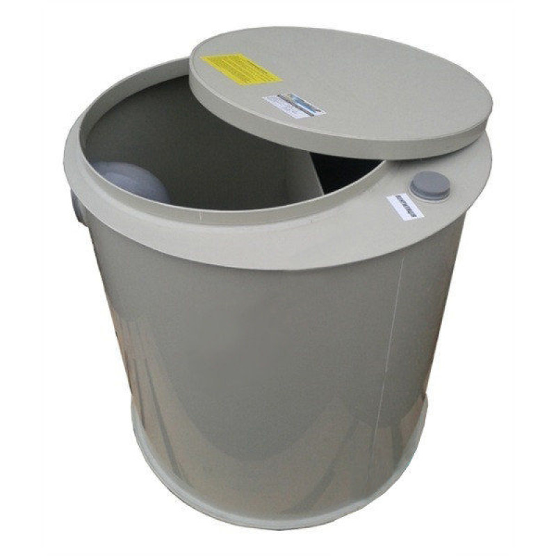 Сепаратор має циліндричну конструкцію (аналог бочки), виготовлену з пластику. Він оснащений знімною кришкою і двома патрубками: один для підключення мийок, другий — для скиду в каналізаційний стік. Працює за принципом гравітації, розділяючи жири, які накопичуються на дні ємності, а також збираючи інші тверді частки, такі як кавова гуща, риб'яча луска і дрібні кістки. Очищення жироуловника виконується вручну або за допомогою насоса для відкачування осаду.