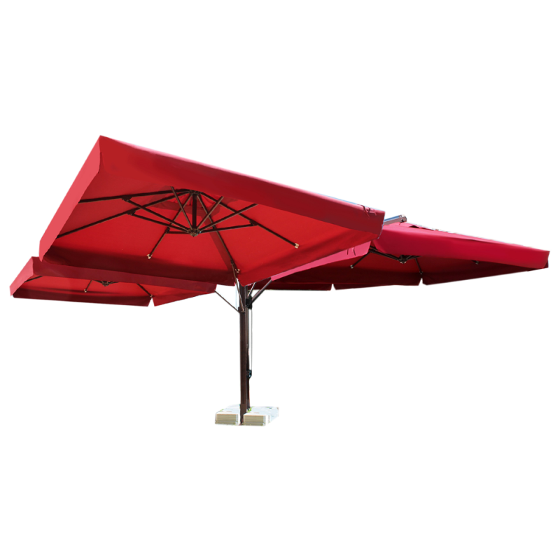 Професійна парасоля захистить від яскравих сонячних променів і створить приємну затінену атмосферу в приватних садах, зони біля басейну, відкритих літніх майданчиках кафе, барів і ресторанів. Виконання купола можливо з трьох тканин: бежевий поліестер, олефін і акрил. Варіанти забарвлення представлені в кольоровій палітрі для тканини олефін і акрил. Покриття опори і спиць можна вибрати з представленої палітри, в чорному кольорі + 10% до вартості виробу. Ціна на сайті вказана за тканину бежевий поліестер, вартість купола з тканини акрил і олефін уточнюйте у менеджера.
