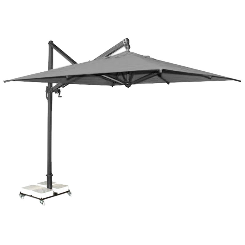 Кольорова палітра купола для тканин олефін і акрил Кольорова палітра опори і спиць Характеристики Довжина/ширина/висота: 300 x 300 x 310 см Вага: 210 кг База: мармурова 160 кг Мінімальна вага обважнювача, бази: 150 кг Матеріал купола: олефін Форма: квадратна Колір купола: 2657 Висота до кромки відкритого купола: 230 см Щільність тенту: 250 г/м² Механізм відкриття: лебідка ручна Тип: з бічною опорою Розмір опори: 7 х 7 см (товщина 0,2 см) Матеріал опори: алюміній Кількість спиць: 8 шт. Матеріал спиць: алюміній Розмір перетину спиць: 2 х 3 см (товщина 0,2 см) Деталі: цілісний пластик Гарантія: 2 роки Країна виробник: Туреччина Розмір упаковки (ДШВ): 265 x 30 x 30 см