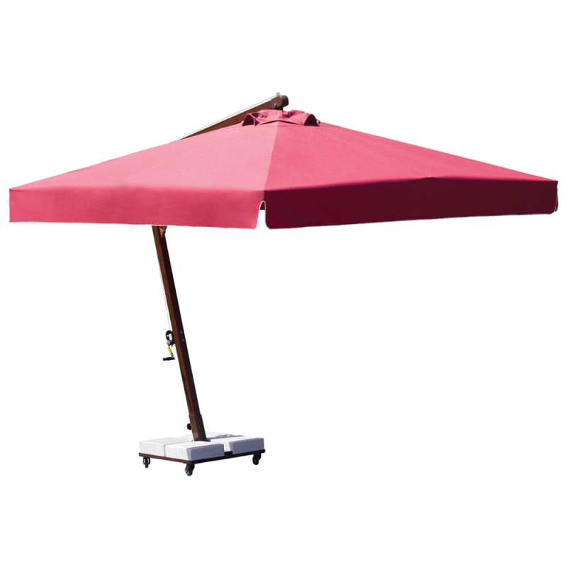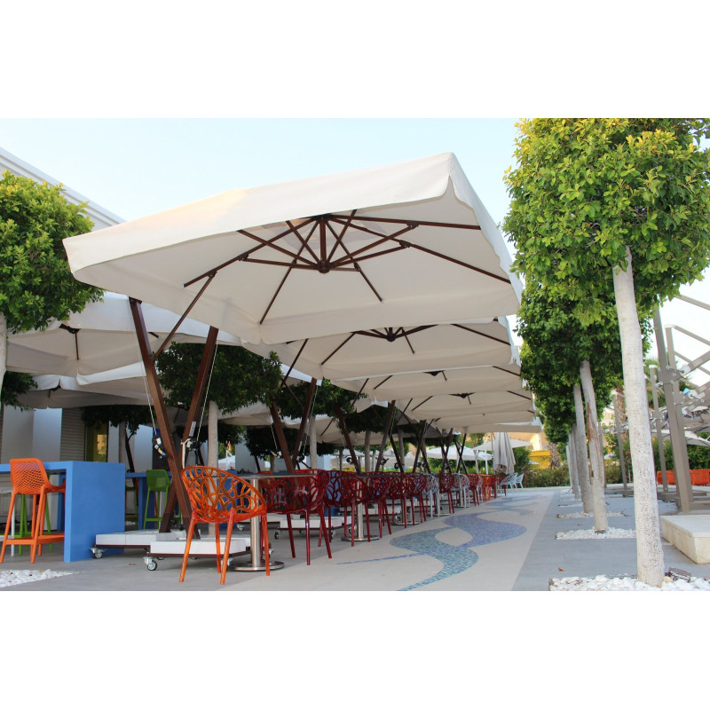 Професійна парасоля захистить від яскравих сонячних променів і створить приємну затінену атмосферу в приватних садах, зони біля басейну, відкритих літніх майданчиках кафе, барів і ресторанів. Виконання купола можливо з трьох тканин: бежевий поліестер, олефін і акрил. Варіанти забарвлення представлені в кольоровій палітрі для тканини олефін і акрил. Покриття опори і спиць можна вибрати з представленої палітри, в чорному кольорі + 10% до вартості виробу. Ціна на сайті вказана за тканину бежевий поліестер, вартість купола з тканини акрил і олефін уточнюйте у менеджера.