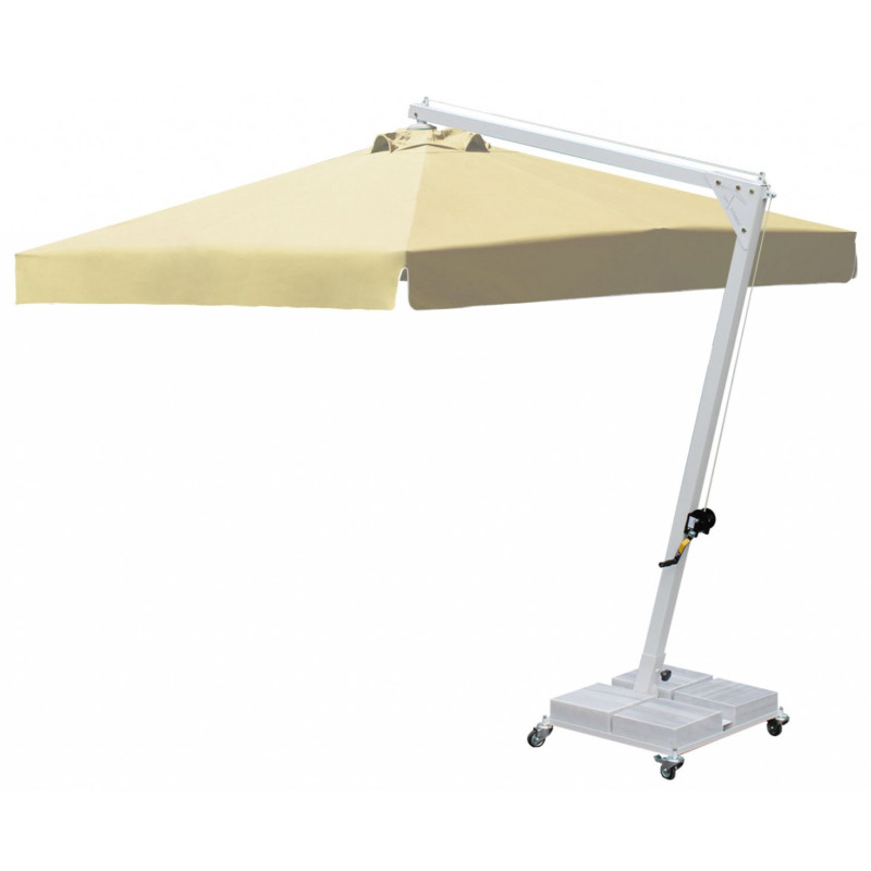 Кольорова палітра купола для тканин олефін і акрил Кольорова палітра опори і спиць Характеристики Матеріал: алюміній, олефін Довжина/ширина/висота: 300 x 300 x 310 см Вага: 210 кг База: мармурова 160 кг Мінімальна вага обважнювача, бази: 150 кг Матеріал купола: олефін Форма: квадратна Колір купола: 2933 Висота до кромки відкритого купола: 230 см Щільність тенту: 250 г/м² Механізм відкриття: лебідка ручна Тип: з бічною опорою Розмір опори: 7 х 7 см (товщина 0,25 см) Матеріал опори: алюміній Кількість спиць: 8 шт. Матеріал спиць: алюміній Розмір перетину спиць: 2 х 3 см, товщина 0,2 см Деталі: цілісний пластик Гарантія: 2 роки Країна виробник: Туреччина Розмір упаковки (ДШВ): 265 x 30 x 30 см