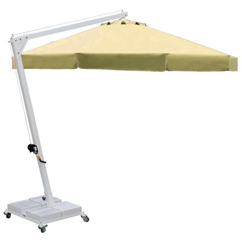 Banana - професійний Парасоля з бічною опорою з алюмінію, що забезпечує високу стійкість моделі. Він захистить від яскравих сонячних променів і створить приємну затінену атмосферу в приватних садах, відкритих літніх майданчиках кафе, барів і ресторанів, зони біля басейну.