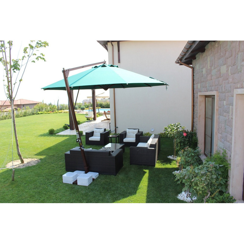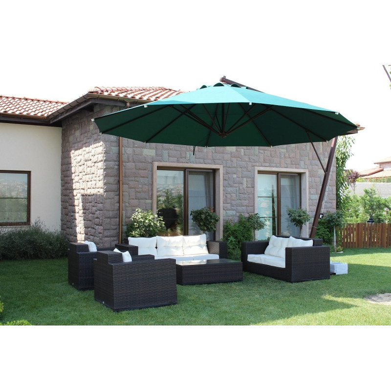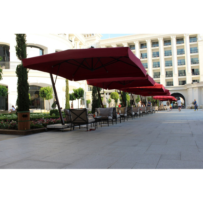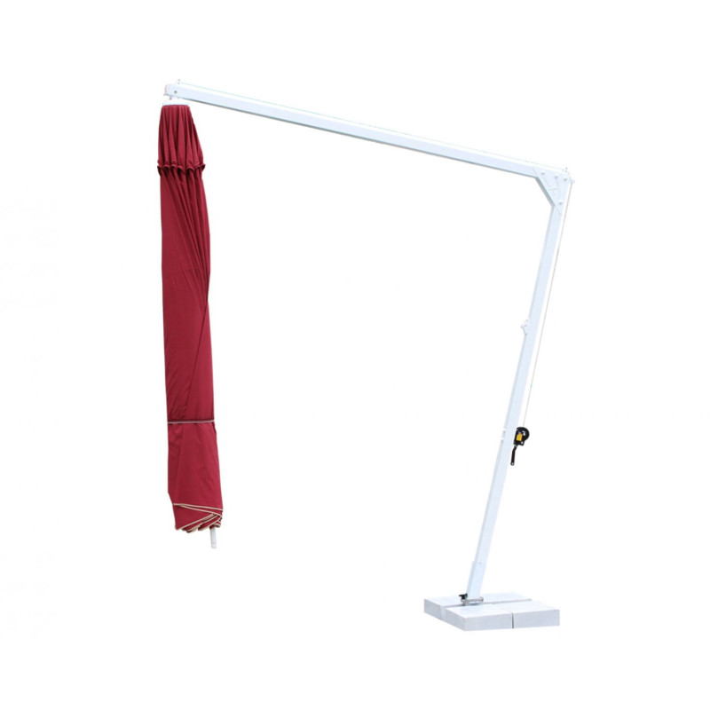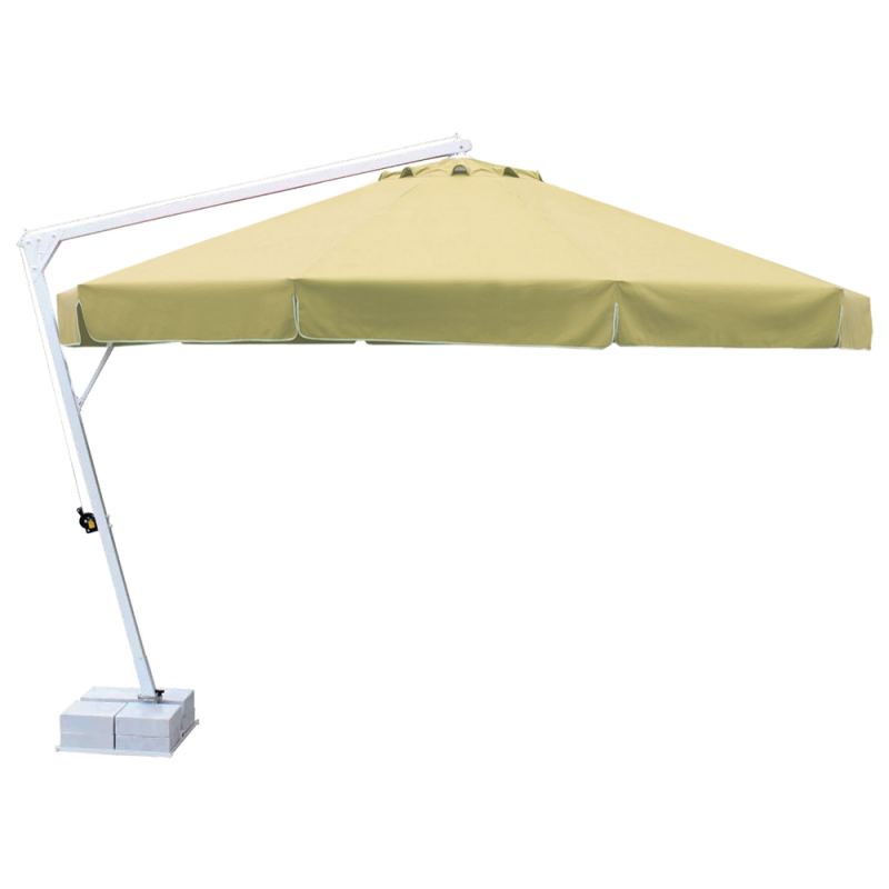 Banana - професійний Парасоля з бічною опорою з алюмінію, що забезпечує високу стійкість моделі. Він захистить від яскравих сонячних променів і створить приємну затінену атмосферу в приватних садах, відкритих літніх майданчиках кафе, барів і ресторанів, зони біля басейну.