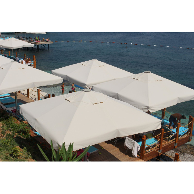 Mega Telescopic Lux - професійна телескопічна парасоля з центральною опорою з алюмінію, що забезпечує високу стійкість моделі. Він захистить від яскравих сонячних променів і створить приємну затінену атмосферу в приватних садах, відкритих літніх майданчиках кафе, барів і ресторанів, зони біля басейну.