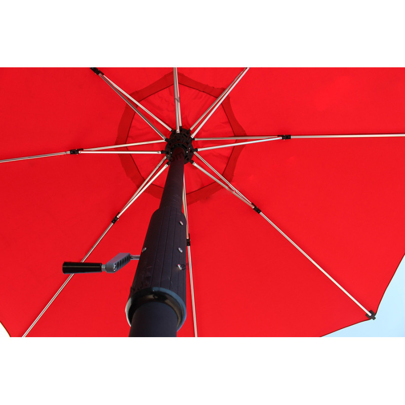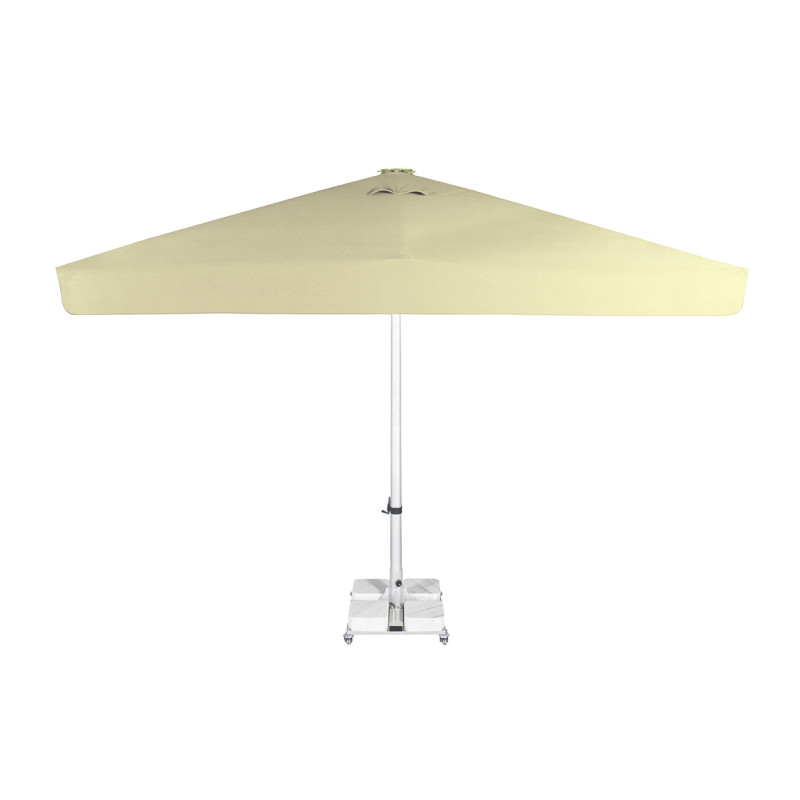 Професійна парасоля захистить від яскравих сонячних променів і створить приємну затінену атмосферу в приватних садах, зони біля басейну, відкритих літніх майданчиках кафе, барів і ресторанів. Виконання купола можливо з трьох тканин: бежевий поліестер, олефін і акрил. Варіанти забарвлення представлені в кольоровій палітрі для тканини олефін і акрил. Покриття опори і спиць можна вибрати з представленої палітри, в чорному кольорі + 10% до вартості виробу. Ціна на сайті вказана за тканину бежевий поліестер, вартість купола з тканини акрил і олефін уточнюйте у менеджера.