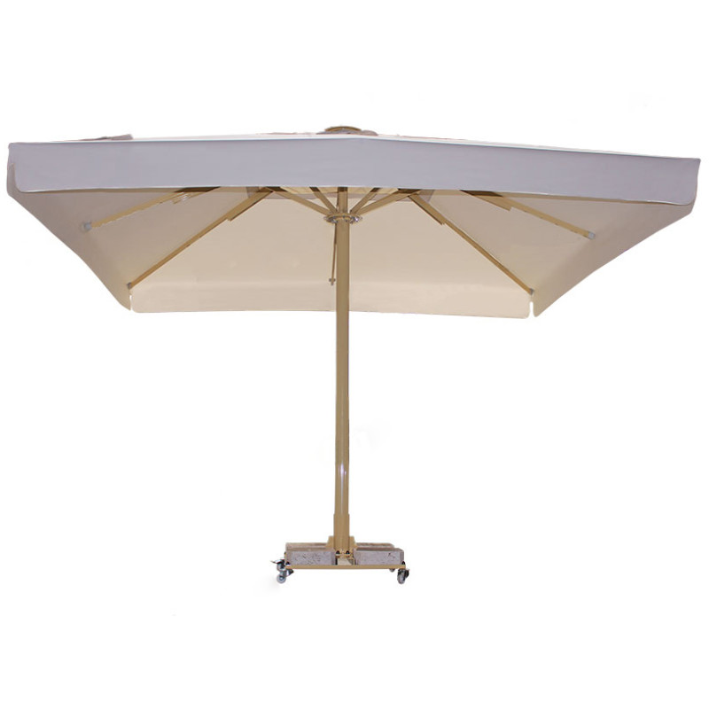 Кольорова палітра купола для тканин олефін і акрил Кольорова палітра опори і спиць Характеристики Довжина/ширина/висота: 400 x 400 x 420 см Вага: 260 кг База: немає Матеріал купола: поліестер Форма: квадратна Колір купола: бежева Висота до кромки відкритого купола: 226 см Щільність тенту: 190 г/м² Механізм відкриття: ручний Тип: з центральною опорою Діаметр опори: d10 см (товщина 0,3 см) Матеріал опори: алюміній Кількість спиць: 8 шт. Матеріал спиць: алюміній Розмір перетину спиць: 2 x 4 см, товщина 0,2 см Деталі: цілісний пластик Гарантія: 2 роки Країна виробник: Туреччина Розмір упаковки (ДШВ): 420 x 45 x 45 см