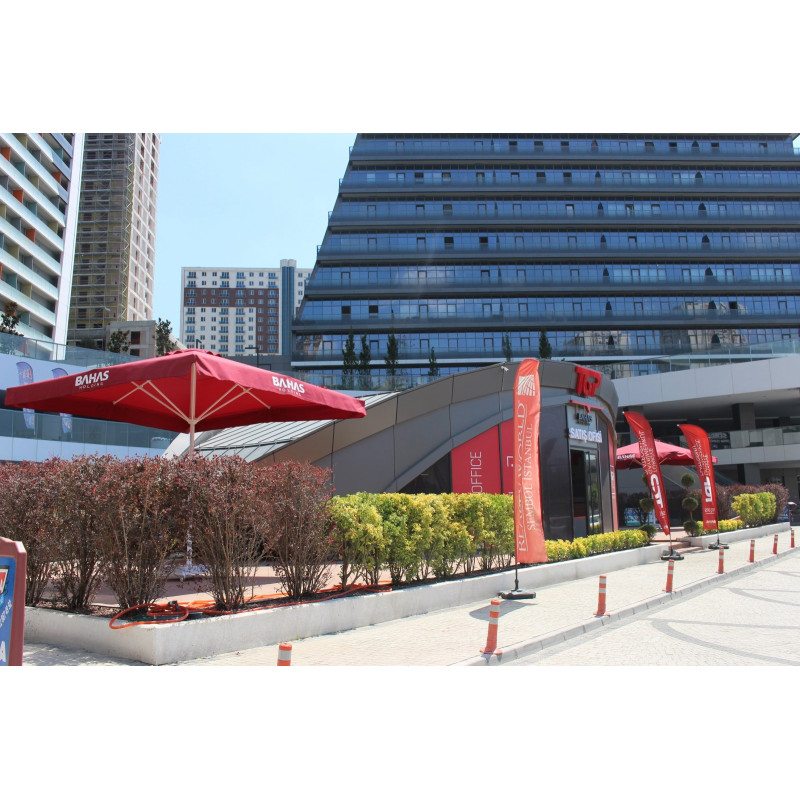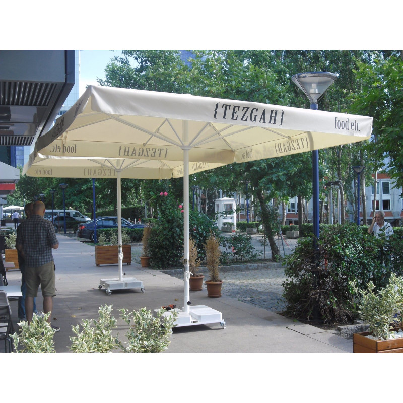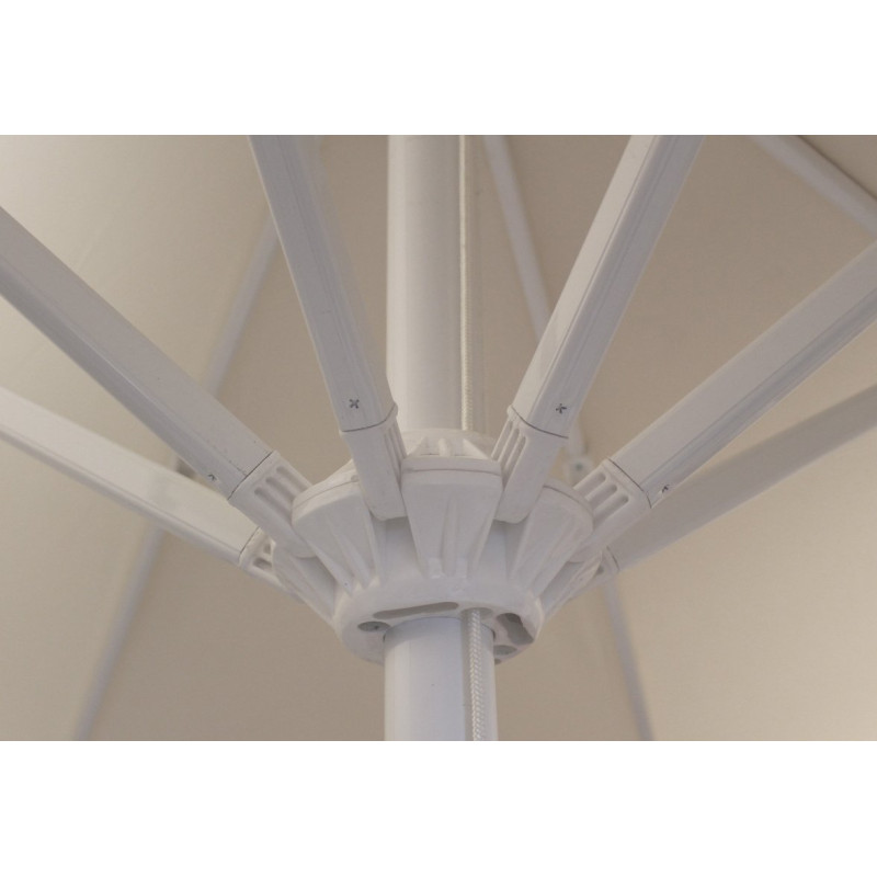 Професійна парасоля захистить від яскравих сонячних променів і створить приємну затінену атмосферу в приватних садах, зони біля басейну, відкритих літніх майданчиках кафе, барів і ресторанів. Виконання купола можливо з трьох тканин: бежевий поліестер, олефін і акрил. Варіанти забарвлення представлені в кольоровій палітрі для тканини олефін і акрил. Покриття опори і спиць можна вибрати з представленої палітри, в чорному кольорі + 10% до вартості виробу. Ціна на сайті вказана за тканину бежевий поліестер, вартість купола з тканини акрил і олефін уточнюйте у менеджера.