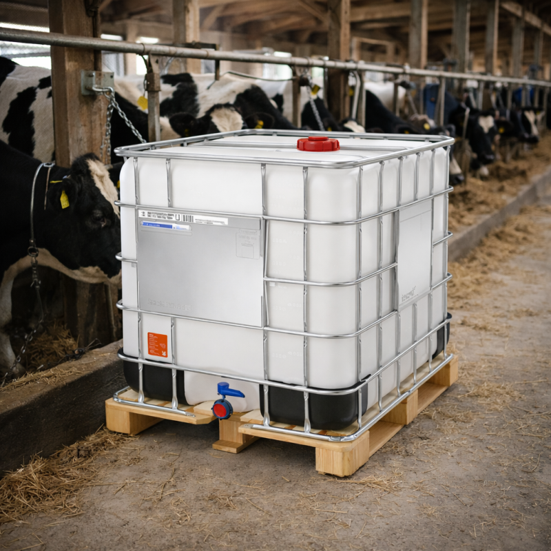 IBC-контейнер SCHÜTZ ECOBULK объёмом 1000 литров — это полностью новый промышленный контейнер европейского производства, предназначенный для хранения и транспортировки жидкостей в промышленности, сельском хозяйстве и коммерческой деятельности.
